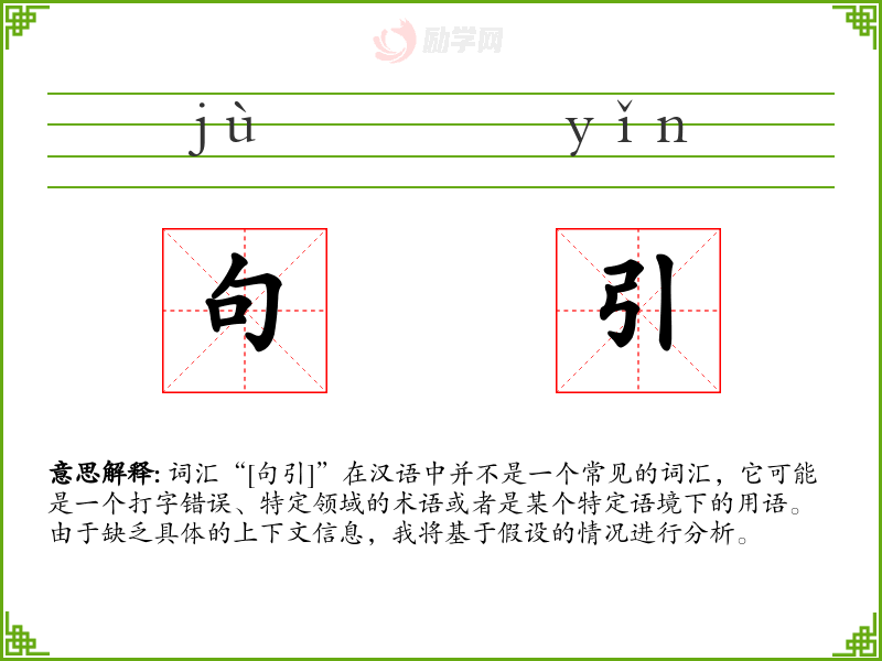 词汇“[句引]”在汉语中并不是一个常见的词汇,它可能是一个打字错误、特定领域的术语或者是某个特定语境下的用语。由于缺乏具体的上下文信息,我将基于假设的情况进行分析。