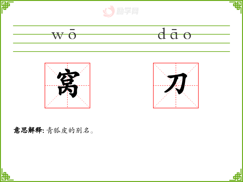 窝刀的意思是:青狐皮的别名。