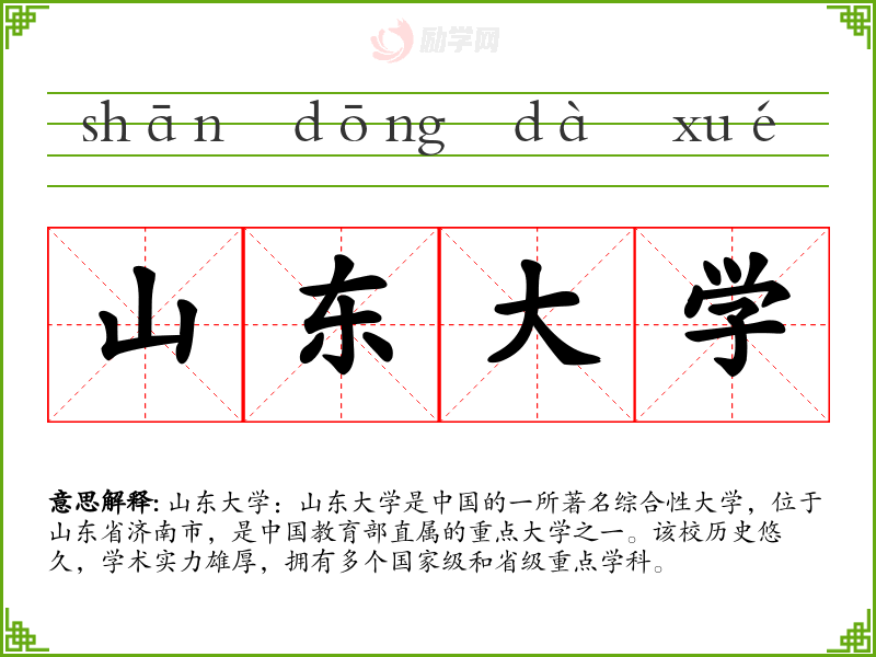 山东大学作为一个词汇,不仅代表了一个具体的教育机构,还承载了深厚的历史和文化意义。在语言学*和表达中,理解和运用这样的词汇,有助于我们更深入地了解和欣赏不同文化的教育传统和学术成就。