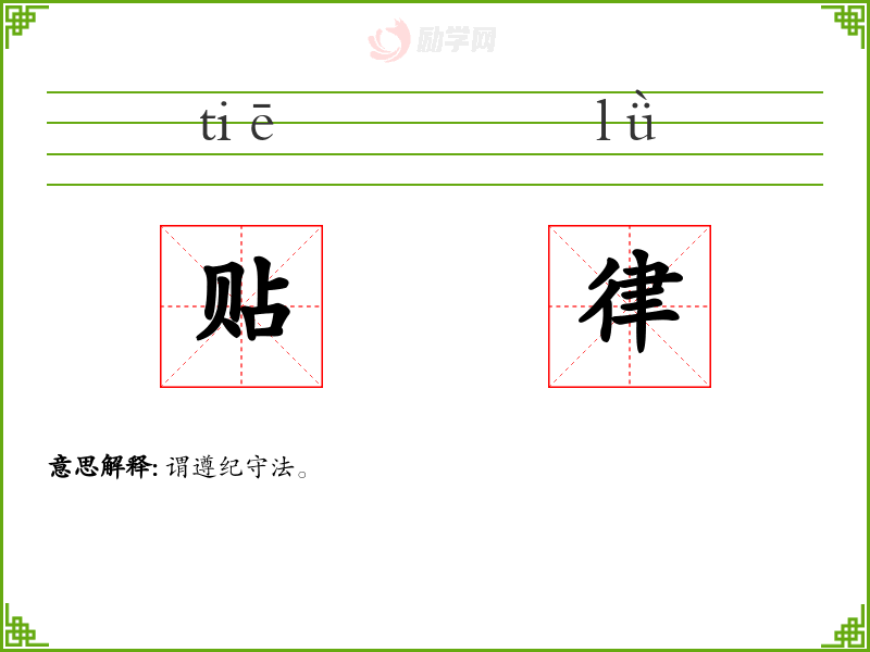 律则、 律贯、 律科、 律度、 律纪、 律贯、 律斩