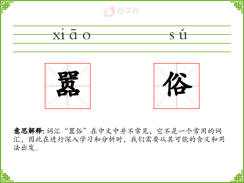 词汇“嚣俗”在中文中并不常见,它不是一个常用的词汇,因此在进行深入学习和分析时,我们需要从其可能的含义和用法出发。