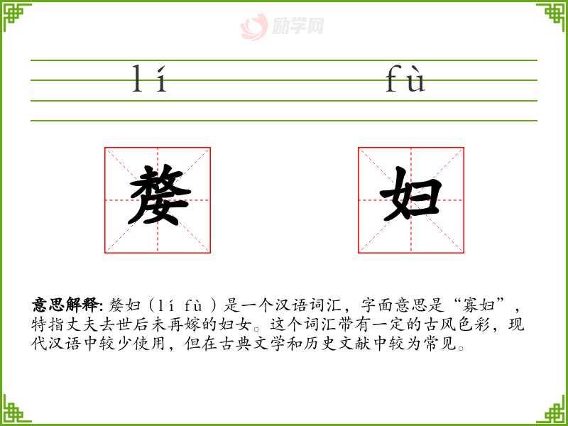 1.嫠妇的拼音是什么?嫠妇怎么读?