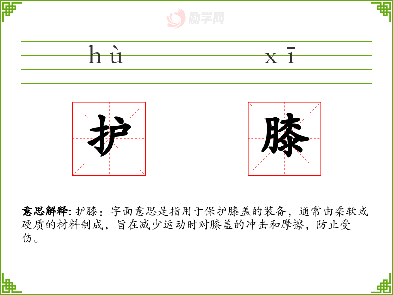 护膝不仅是物理上的保护装备,也象征着对自身的关怀和预防意识。在语言学*和表达中,了解和正确使用这类词汇有助于丰富我们的词汇量和表达能力。