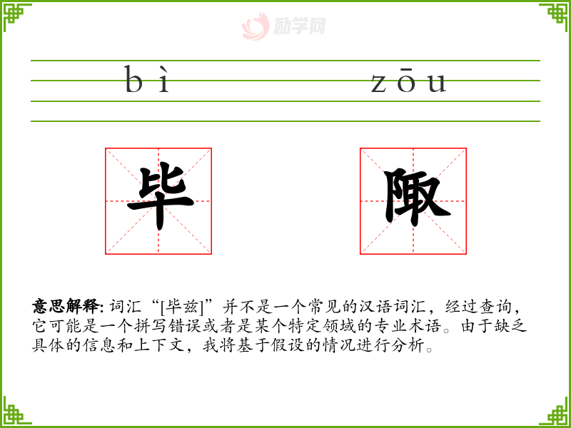 词汇“[毕兹]”并不是一个常见的汉语词汇,经过查询,它可能是一个拼写错误或者是某个特定领域的专业术语。由于缺乏具体的信息和上下文,我将基于假设的情况进行分析。