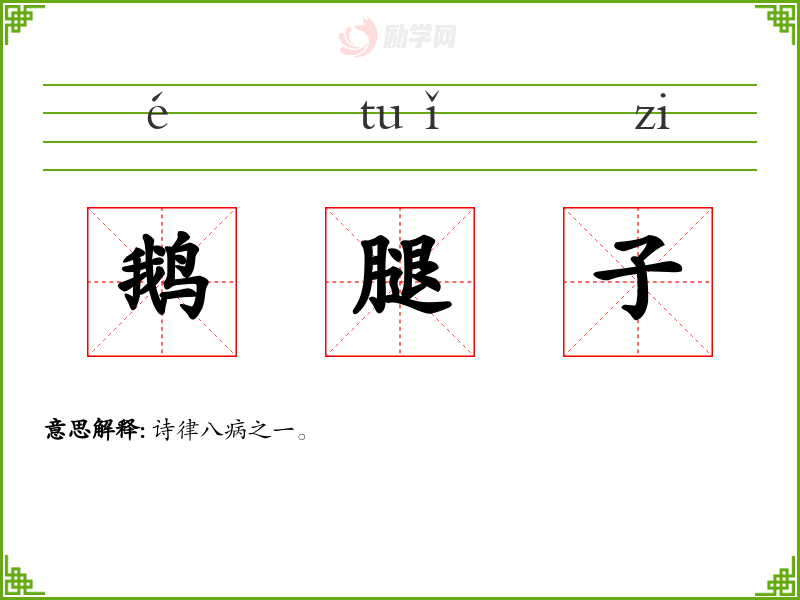 鹅腿子的意思是:诗律八病之一。