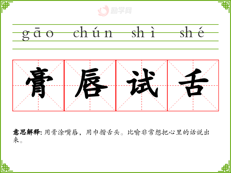 1.膏唇试舌的拼音是什么?膏唇试舌怎么读?