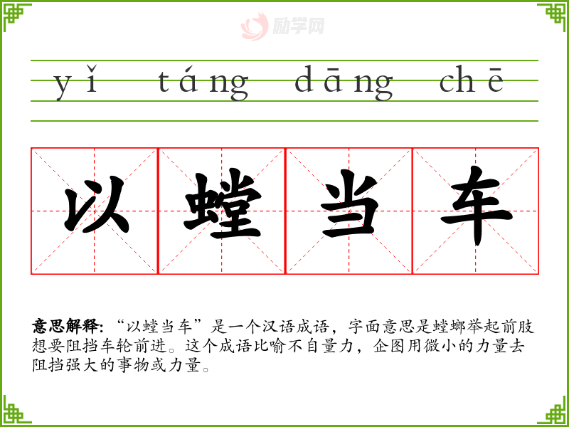 以螳当车的拼音是:yǐ táng dāng chē