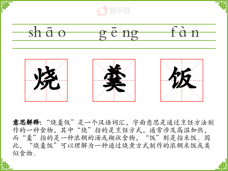 1.烧羹饭的拼音是什么?烧羹饭怎么读?