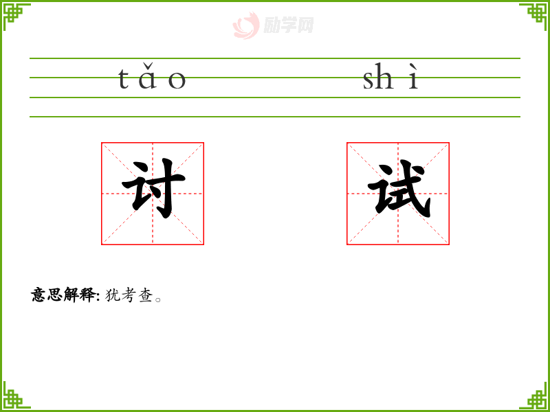 《说文》-讨,治也。 《玉篇》-讨,诛也。 《左传·宣公十二年》-其君无日不讨国人而训之。 《左传·襄公五年》-楚人讨陈叛。