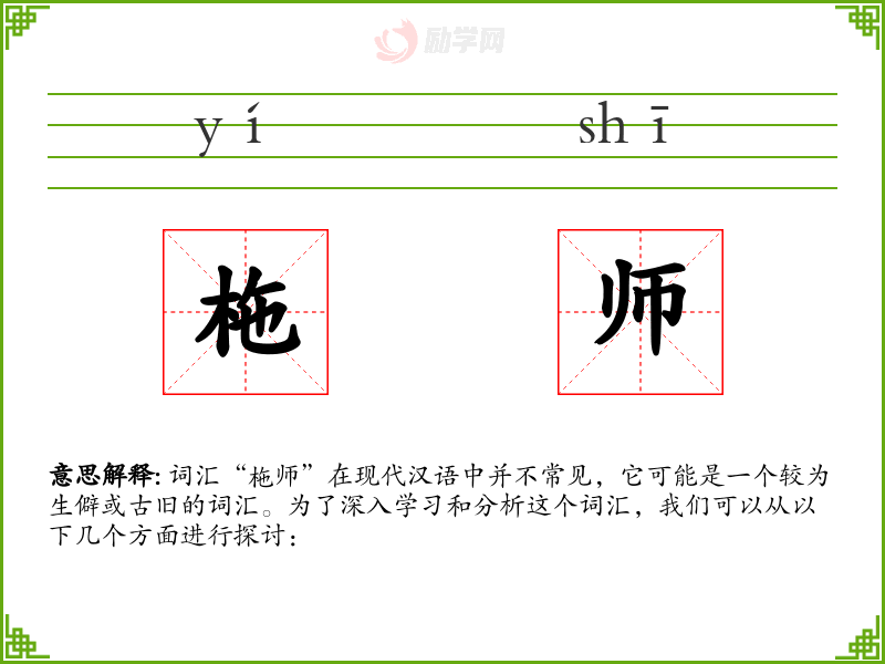 词汇“柂师”在现代汉语中并不常见,它可能是一个较为生僻或古旧的词汇。为了深入学习和分析这个词汇,我们可以从以下几个方面进行探讨: