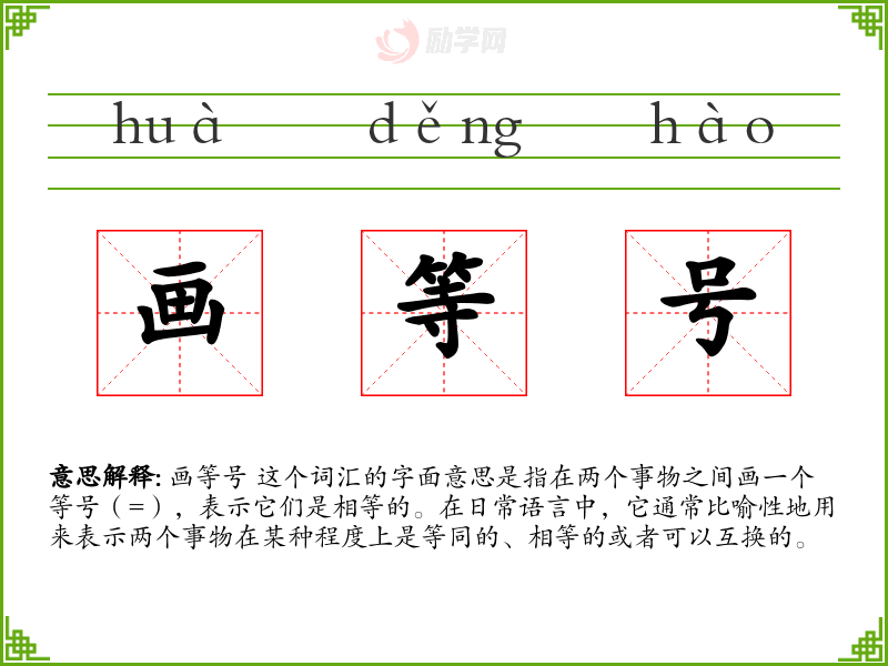 画等号的拼音是:huà děng hào
