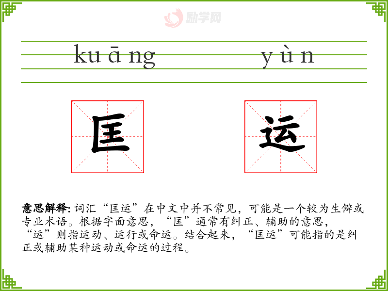 - 词源:“匡”源自古代汉语,意为纠正、辅助;“运”源自**、命运。