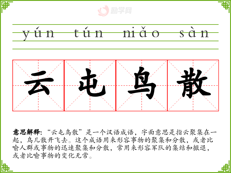 1.云屯鸟散的拼音是什么?云屯鸟散怎么读?