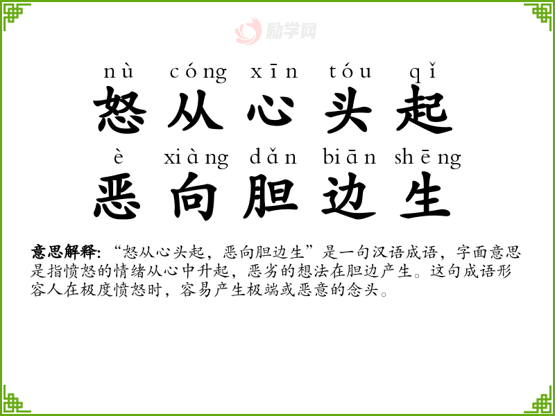1.怒从心头起,恶向胆边生的拼音是什么?怒从心头起,恶向胆边生怎么读?