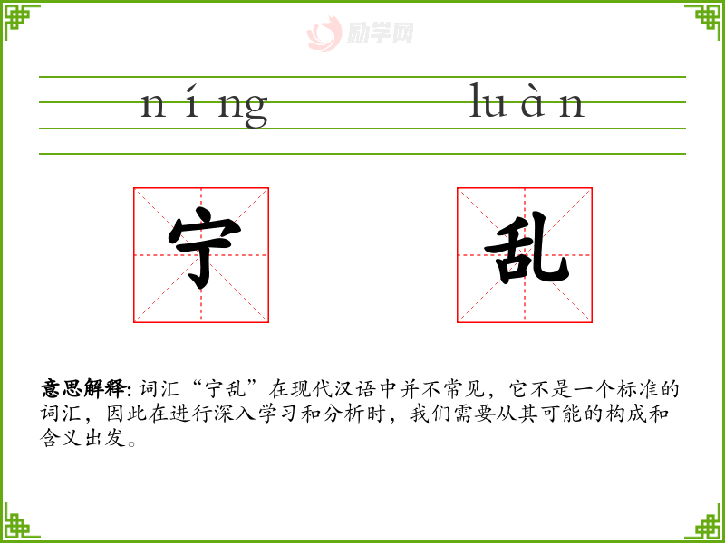 词汇“宁乱”在现代汉语中并不常见,它不是一个标准的词汇,因此在进行深入学习和分析时,我们需要从其可能的构成和含义出发。