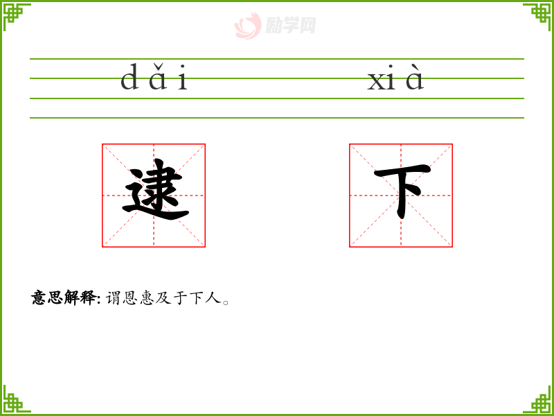 逮下的意思是:谓恩惠及于下人。