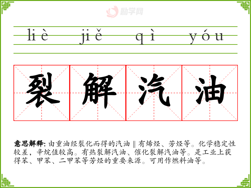 1.裂解汽油的拼音是什么?裂解汽油怎么读?