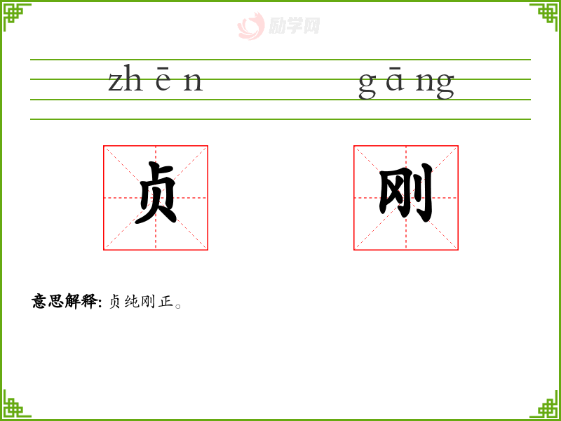 贞刚的意思是:贞纯刚正。