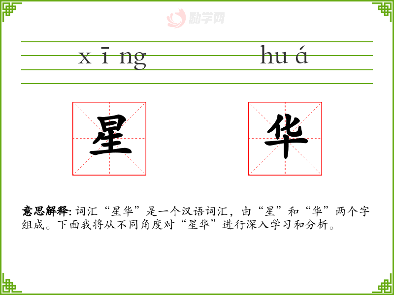 - 词源:“星”和“华”都是古代汉语词汇,历史悠久。