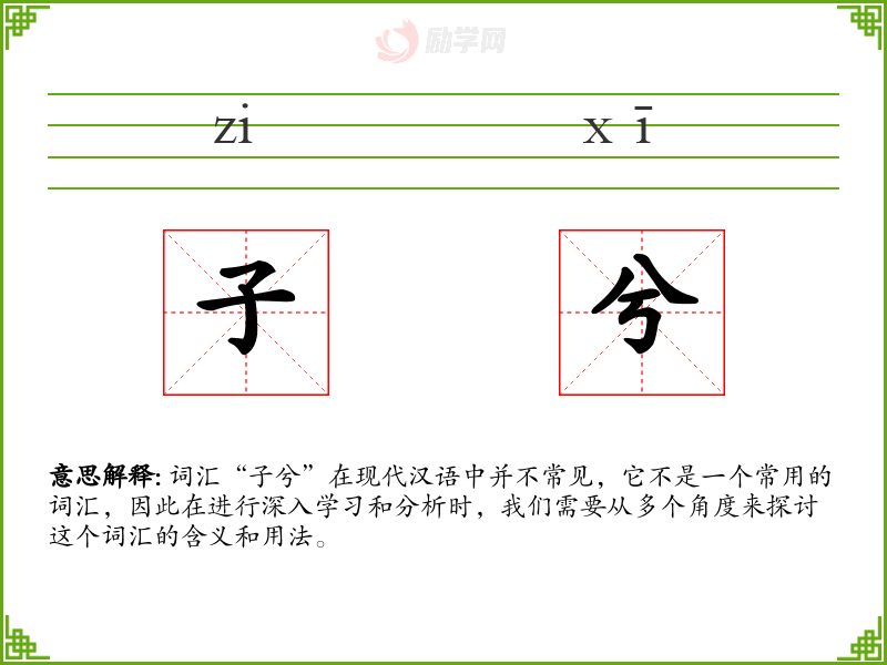 词汇“子兮”在现代汉语中并不常见,它不是一个常用的词汇,因此在进行深入学*和分析时,我们需要从多个角度来探讨这个词汇的含义和用法。