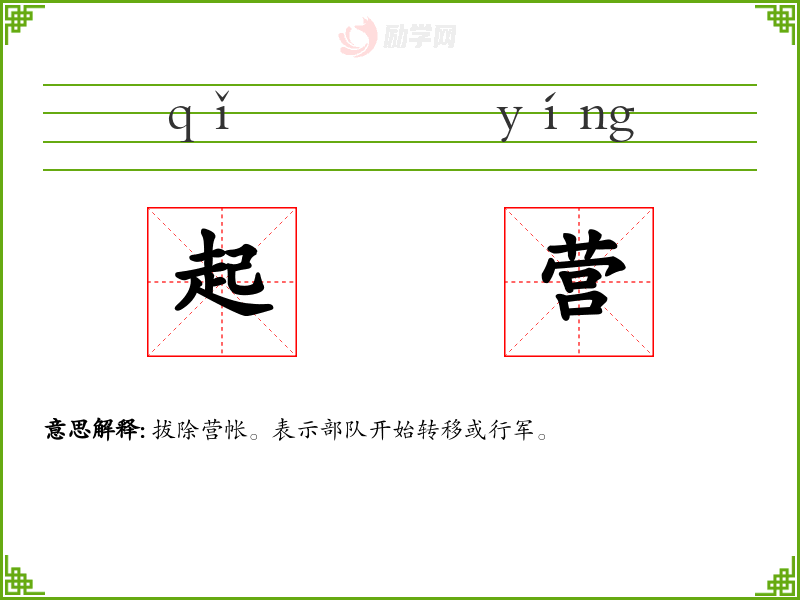 起营的意思是:拔除营帐。表示部队开始转移或行军。