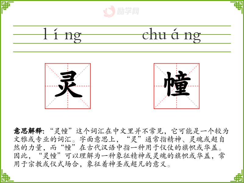 在传统文化中,灵幢可能与或道教的仪式有关,象征着神灵的存在和庇佑。在社会背景中,这个词汇可能与**信仰、历史传承和文化遗产有关。