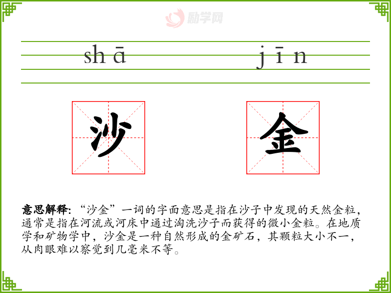 通过对“沙金”的深入学,我认识到这个词不仅指代一种自然资源,还承载着人类对财富的追求和对自然界的敬畏。在语言学和表达中,理解“沙金”的多重含义有助于我更准确地使用词汇,并在创作中赋予词汇更深的内涵。