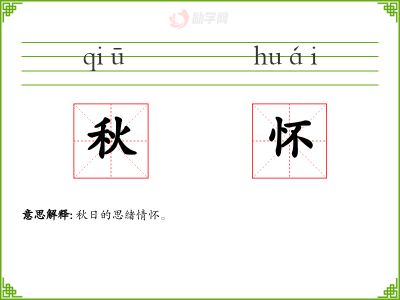 《说文》-秋,禾谷熟也。 《尔雅》-秋为白藏。又,秋为收成。 《春秋繁露·官制象无篇》-秋者,少阴之选也。 《月令章句》-百谷名以其初生为春,熟为秋,故麦以孟夏为秋。 宋·范成大《颜桥道中》-处处田畴尽有秋。 赵树理《福贵》-收过了秋,天气一凉,病就重起来。