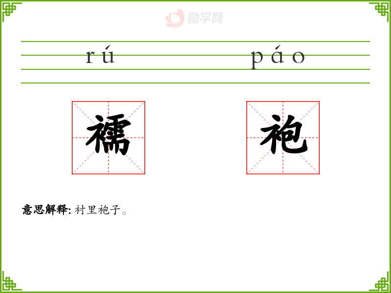 (形声。从衣,需声。本义:短衣;短袄。襦有单、复。单襦近乎衫,复襦则近袄)。