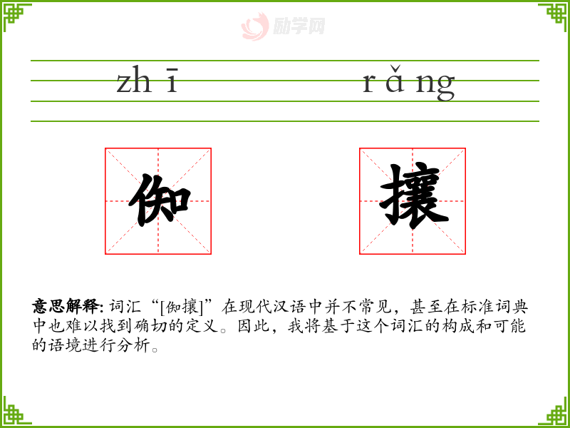 词汇“[倁攘]”在现代汉语中并不常见,甚至在标准词典中也难以找到确切的定义。因此,我将基于这个词汇的构成和可能的语境进行分析。
