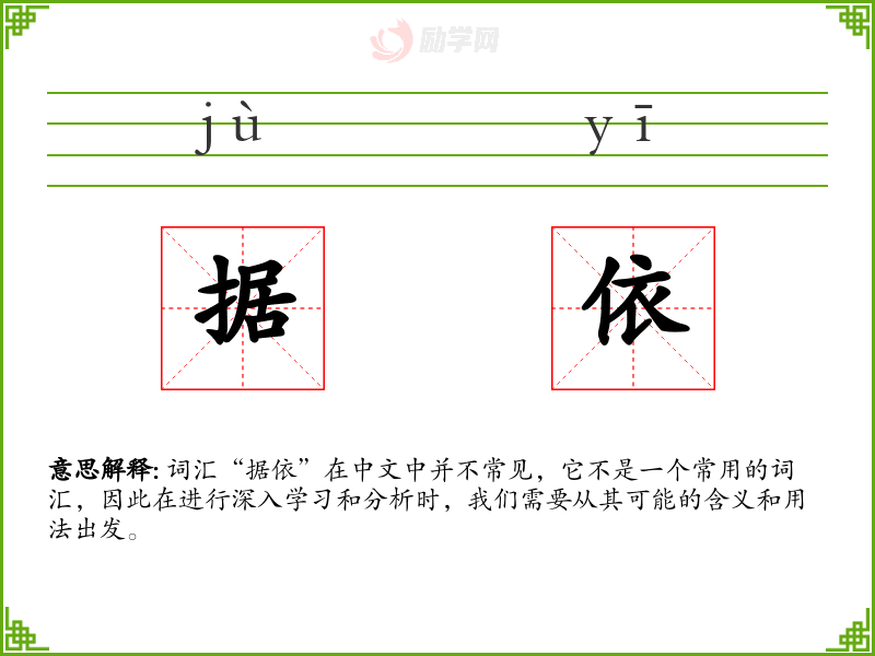 词汇“据依”在中文中并不常见,它不是一个常用的词汇,因此在进行深入学习和分析时,我们需要从其可能的含义和用法出发。