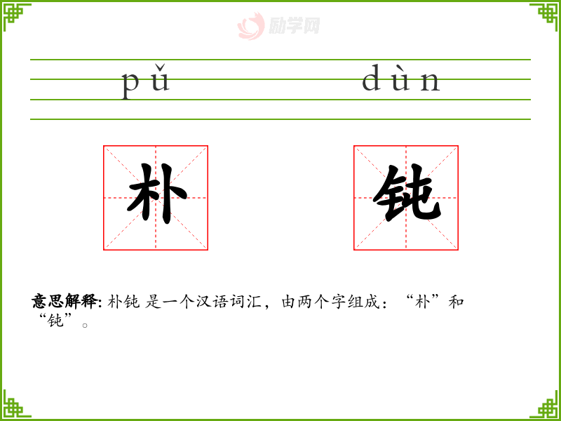 朴钝的意思是:不锋利; 质朴,不敏捷。