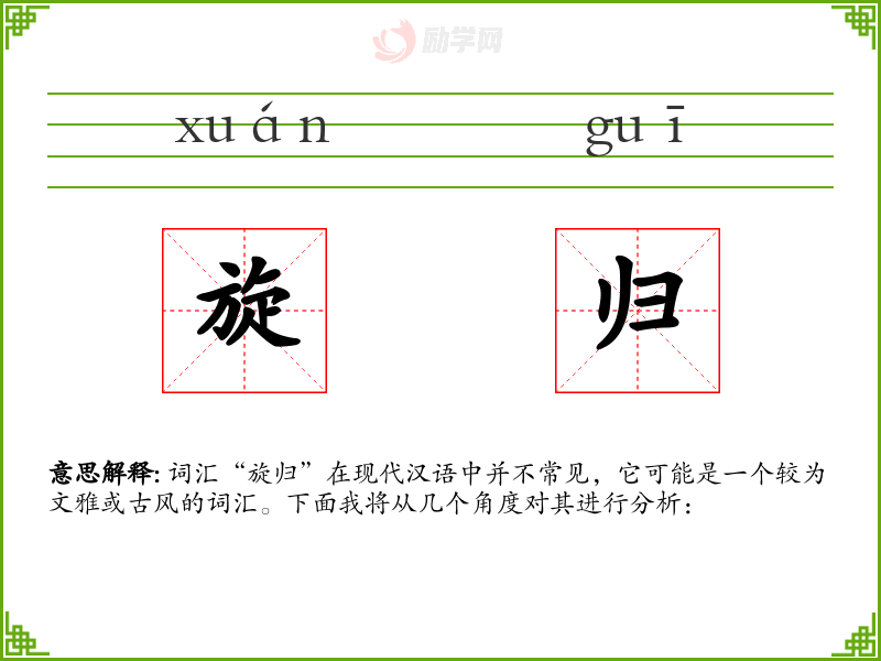词汇“旋归”在现代汉语中并不常见,它可能是一个较为文雅或古风的词汇。下面我将从几个角度对其进行分析: