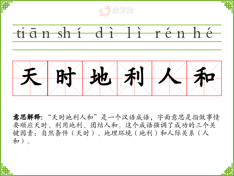 1.天时地利人和的拼音是什么?天时地利人和怎么读?