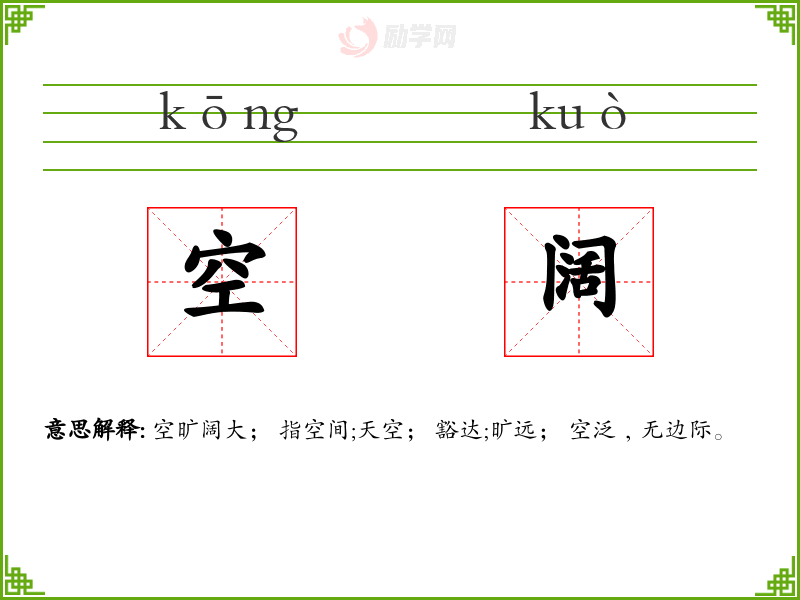 空阔的意思是:空旷阔大; 指空间;天空; 豁达;旷远; 空泛﹐无边际。