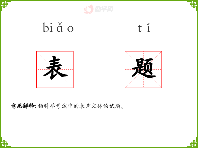 表题的拼音是:biǎo tí