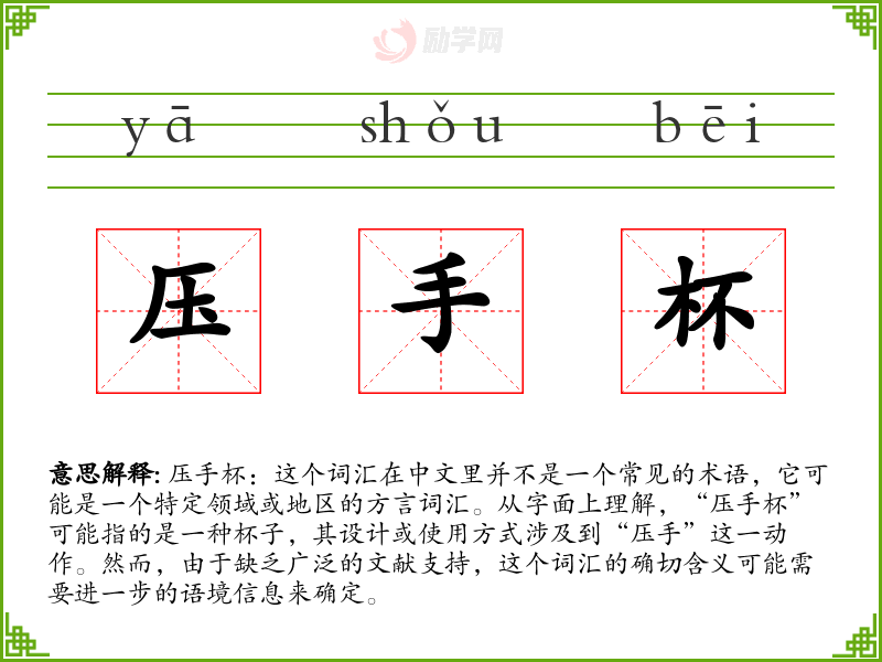 1.压手杯的拼音是什么?压手杯怎么读?