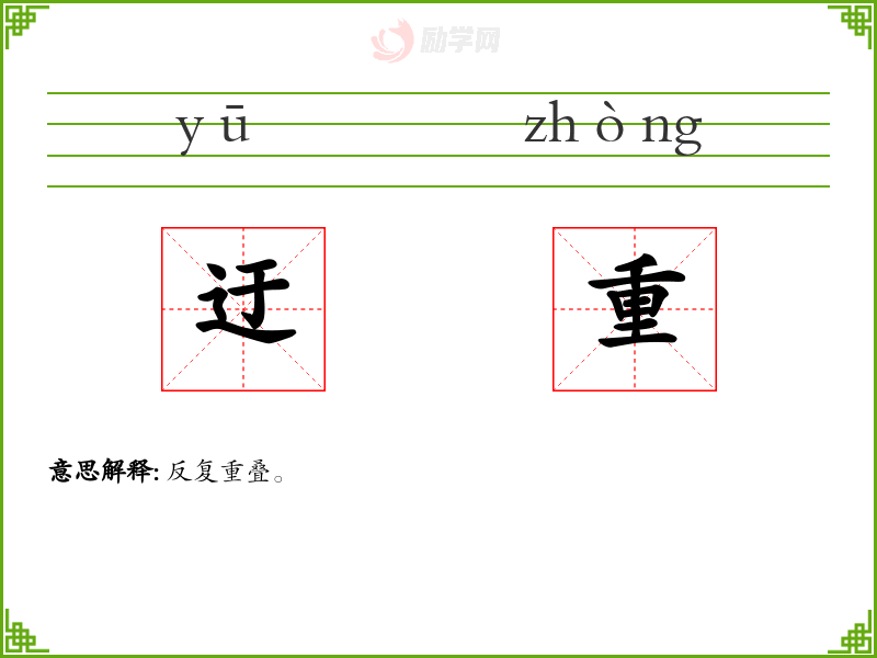 迂重的意思是:反复重叠。