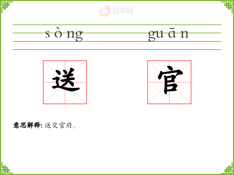 《说文》。-送,遣也。 《荀子·富国》。注:“致女也。”-送迎无礼。