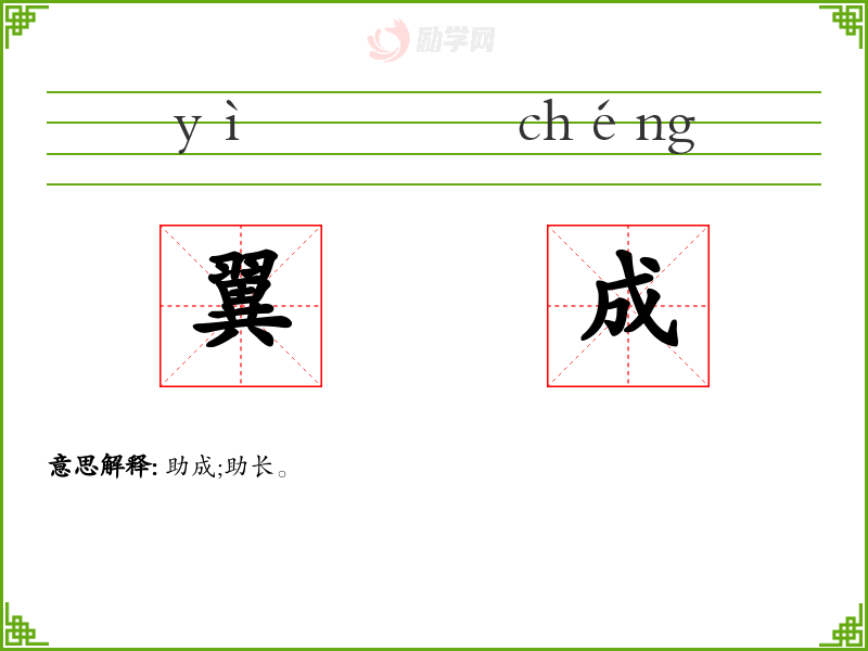 翼成的意思是:助成;助长。