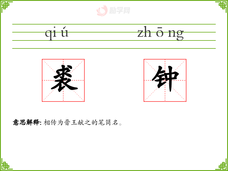 裘钟的意思是:相传为晋王献之的笔筒名。