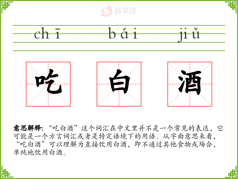 1.吃白酒的拼音是什么?吃白酒怎么读?