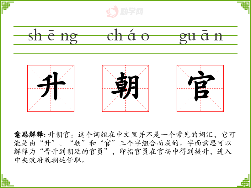 1.升朝官的拼音是什么?升朝官怎么读?