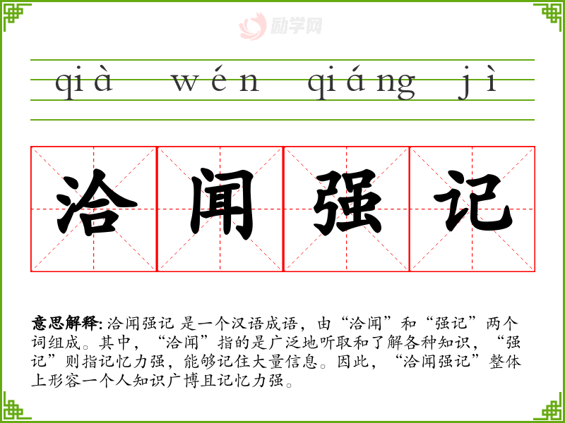 1.洽闻强记的拼音是什么?洽闻强记怎么读?
