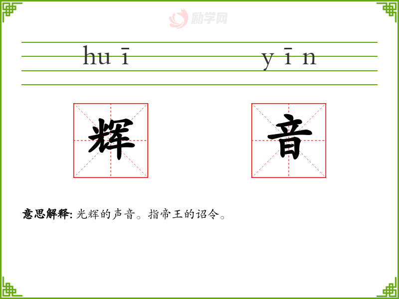 辉音的意思是:光辉的声音。指帝王的诏令。
