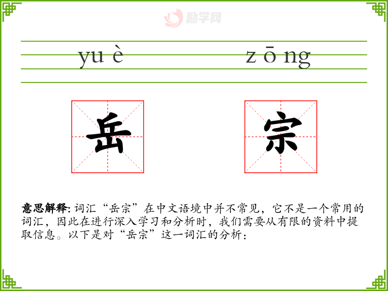 词汇“岳宗”在中文语境中并不常见,它不是一个常用的词汇,因此在进行深入学*和分析时,我们需要从有限的资料中提取信息。以下是对“岳宗”这一词汇的分析: