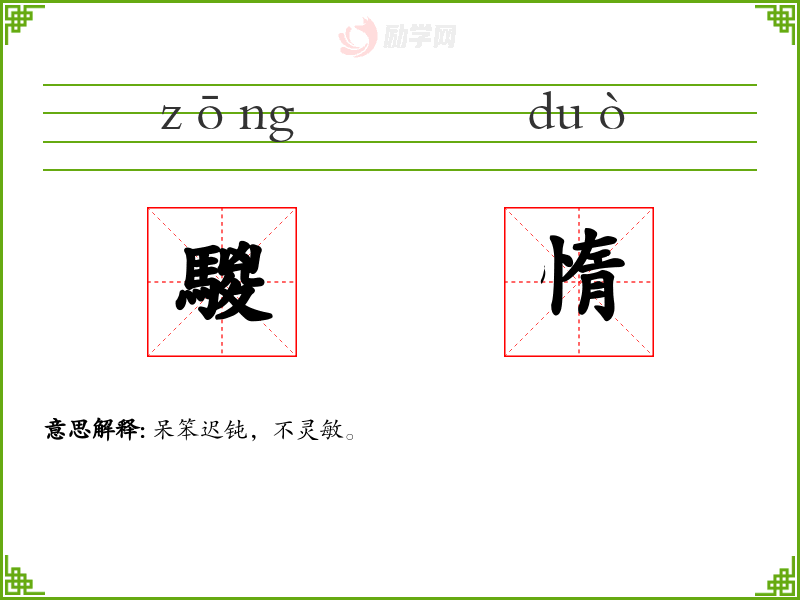 騣惰的意思是:呆笨迟钝,不灵敏。