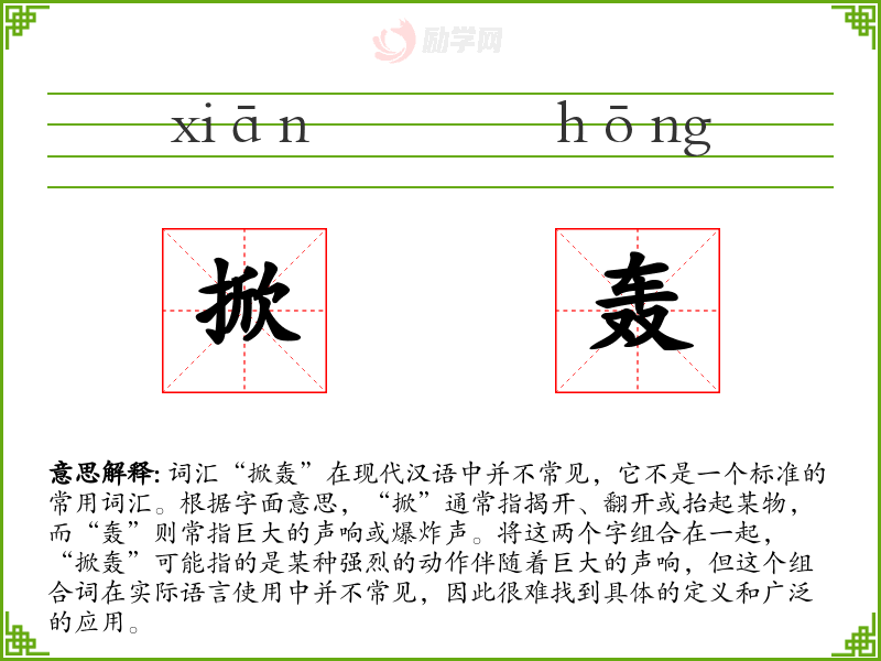 1.掀轰的拼音是什么?掀轰怎么读?