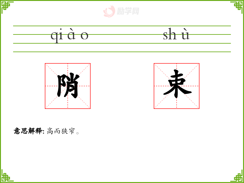 陗束的意思是:高而狭窄。