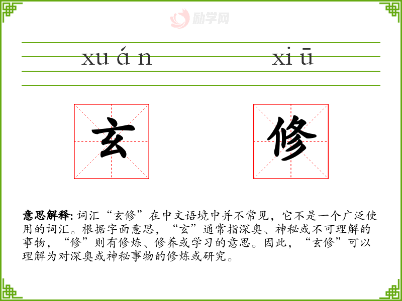 - 理解:玄修是一个涉及深奥或神秘事物的修炼或研究的概念。
